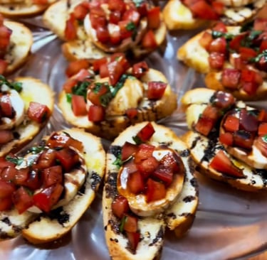 Caprese Bruschetta on Homemade Roasted Garlic Crostinis with Mozzarella and a Balsamic Glaze