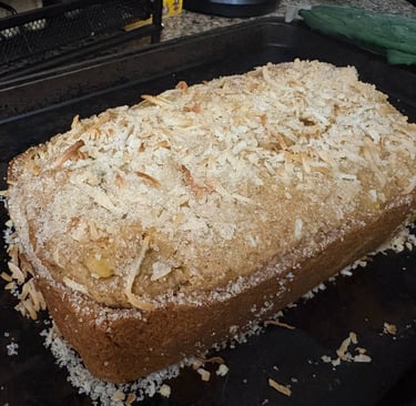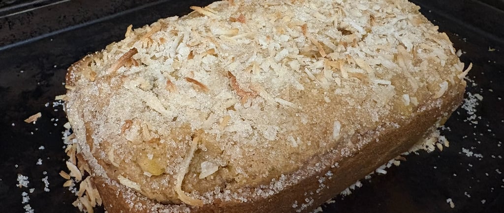 A moist, tropical-inspired quick bread bursting with ripe mango, lime, coconut, and warm spices — finished with a golden turbinado sugar crust. Perfect for breakfast, snacking, or desser